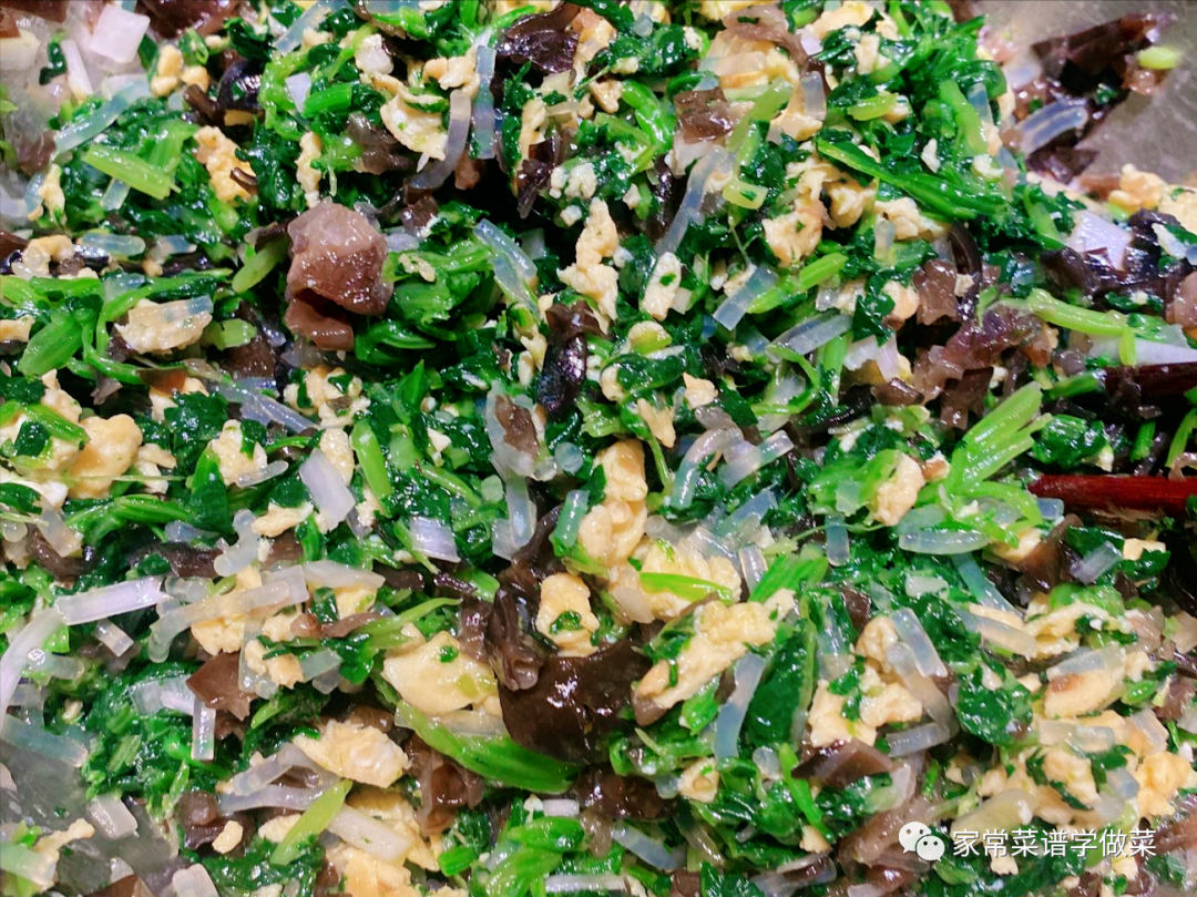 准备一个空碗,放入木耳,浸泡4个小时,泡软泡胀,把菠菜也清洗一下,起锅烧水,把菠菜和粉条分别烫一烫,菠菜大概一分钟,粉条五分钟,全部切碎,鸡蛋煎熟,葱花切碎,一起装入盆中,加入食盐、芝麻香油、蚝油和十三香,搅拌均匀。
