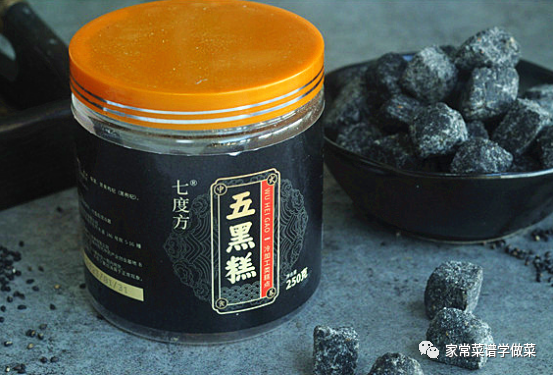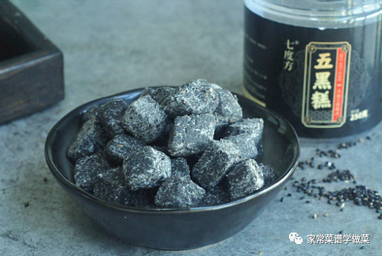 虽说是传统糕点,但五黑糕在食材搭配上非常有新意。以黑芝麻为主,围绕它搭配黑米、黑豆、黑枸杞等食材。粗粮谷物和干果的结合增强抗饿能力,还能给身体带来多种营养。