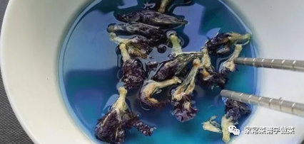 3、蝴蝶兰加少许水泡成蓝色汁水。