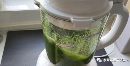 1、菠菜洗净焯水后,放入料理机中打成菠菜汁。