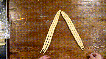 6. 反复重复,将面团编制完成。