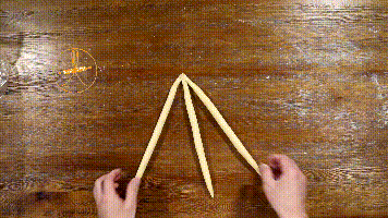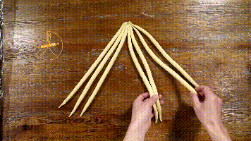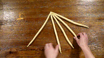 1. 将5条面团一端相交于一点,另一端散开。左起依次标记为1~5号。