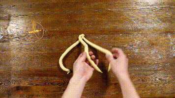 2. 将2、3号面团交叉。
