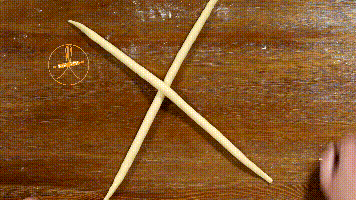 1. 两条面团呈“X字型”交叉摆放,相交垂直。