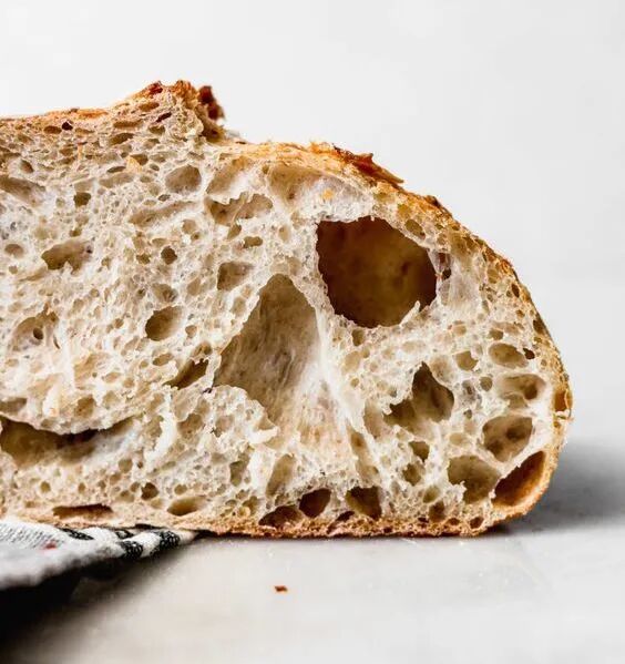 像法棍,夏巴塔这类外壳比例高的欧包,即外壳较为厚硬的欧包,内部就必须有大孔洞,使得口感对比明显,有嚼劲。