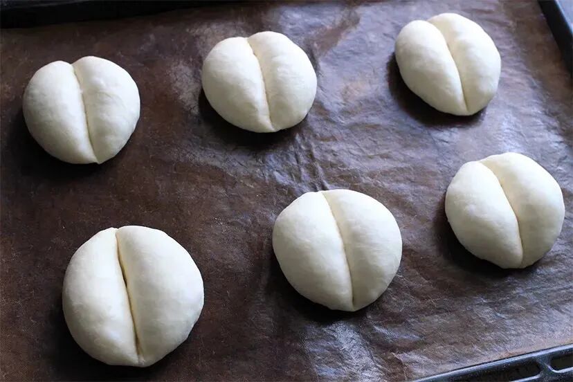 5、最终发酵:将它们排列在烤盘上,在室温下进行二次发酵。