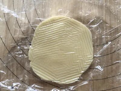 面团搅拌完成后,再次将面团擀成大约15X12cm的方形。