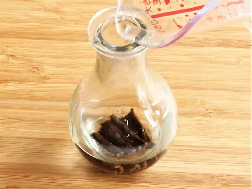将香草荚+50ml伏特加(或者酒精含量40%以上的酒)浸泡大约一个月后,当酒的颜色变得越来越深,香草的气味变得足够强,就可以使用它了。