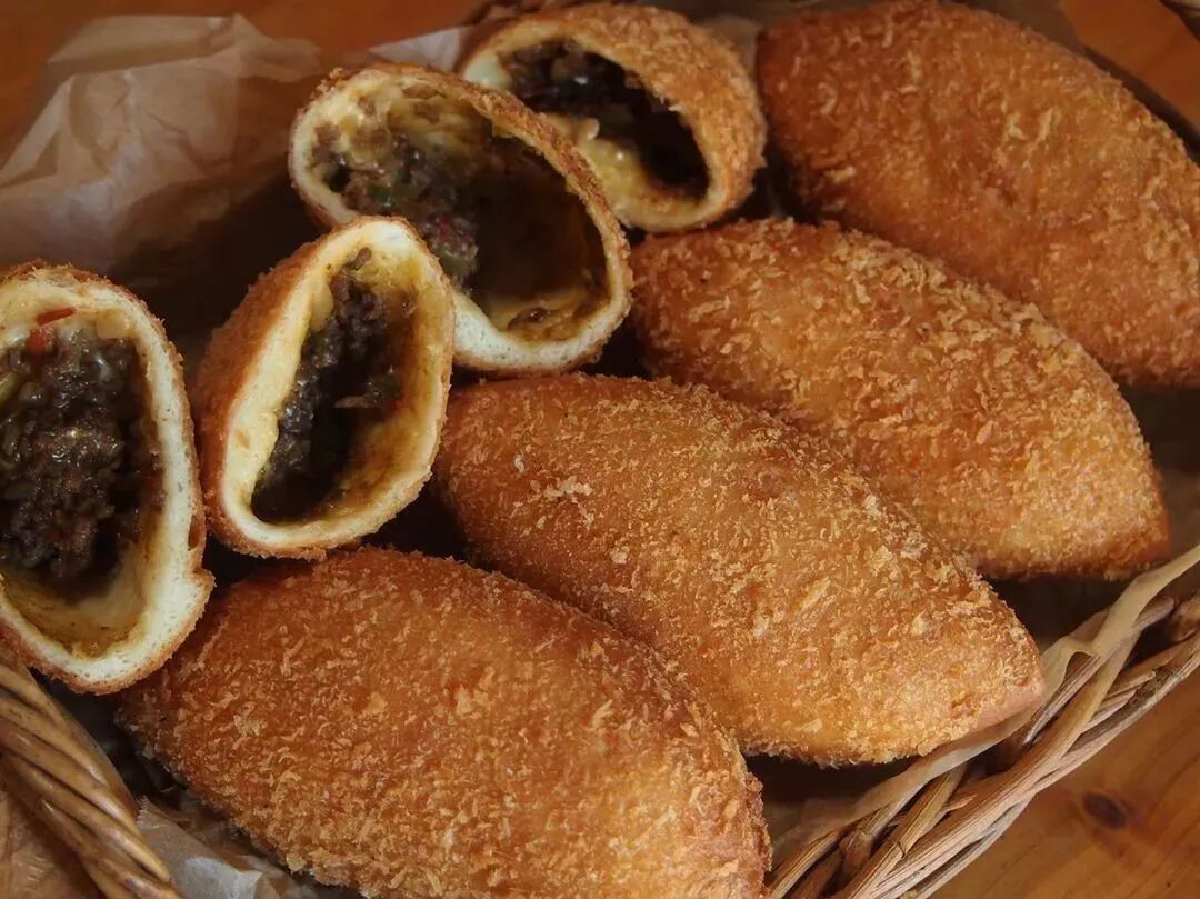 对咖喱痴情的日本人把咖喱煮的块茎蔬菜包进美味的面团里,再下锅油炸至金黄,香喷喷金灿灿的日式咖喱包就做好啦。