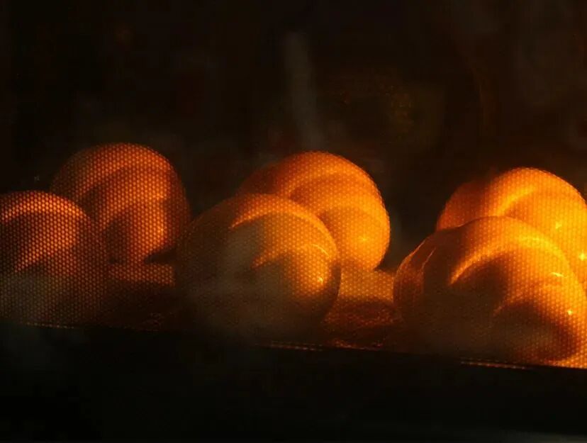 在家庭烘焙中,需要及时将烤盘翻转以防止烘烤不均匀。