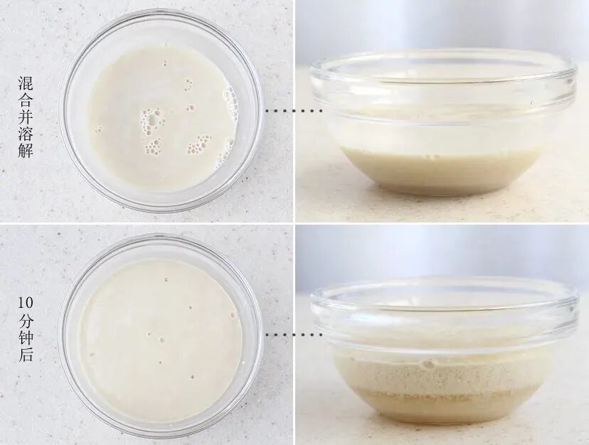 第二步:混合溶解少许糖和1茶匙酵母,然后静置约10分钟。如果它全部膨胀并且有气泡,则证明酵母是活跃的。如果没有变化,那说明酵母已经不能再用了。