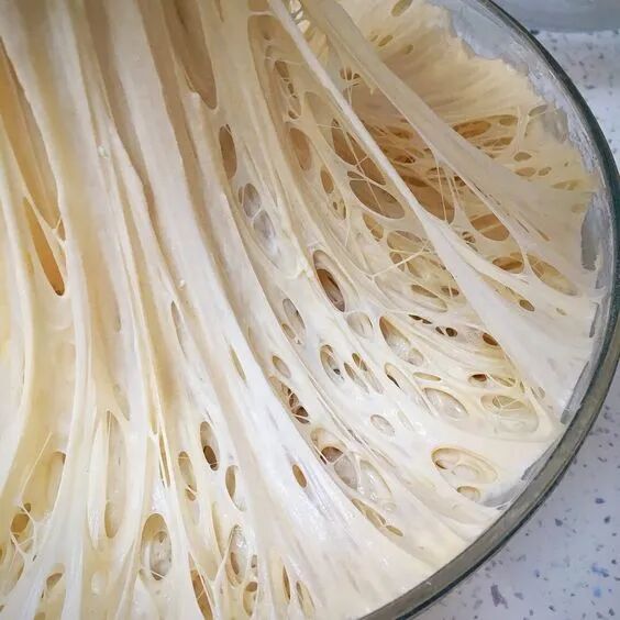 从这时起,我们的天然酵母将会散发酸奶一样香气。面团开始进入稳定期。