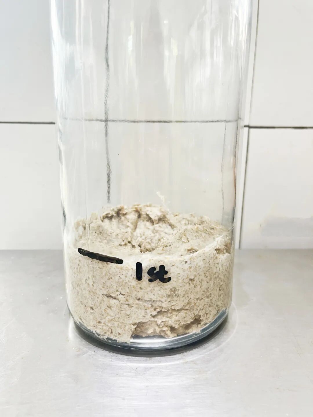 -在第5天,我们使用的比例是1:1:1,可以减少酵母面团的数量。按照0.5:1:1的比例继续喂养,那么,就是100克的酵母面团+200克水+200克面粉。