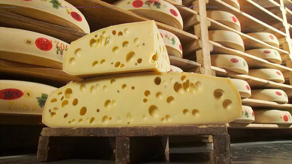 国人从动画片《汤姆和杰瑞》中看到小老鼠杰瑞最爱的奶酪就是这种带奶酪眼的压缩成熟奶酪,这些可爱的奶酪眼可不是虫子穿出来的,是由于奶酪熟化过程中产生了二氧化碳气泡,奶酪表皮又不透气,气泡无法排出,就产生了这些小孔。