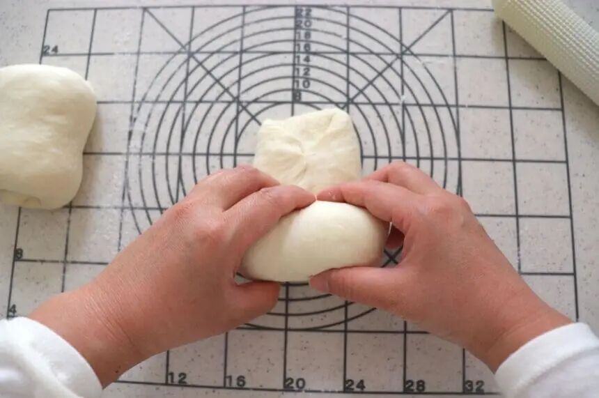 排期后,将面团滚圆,收成原型或者纺锤型,放入模具。