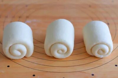 -缺点:需要使用擀面杖操作,相比直接手做橄榄型,它耗时较长;而且要擀出前后均匀厚度一致的长条,也比较考验基本功,往往很多新手容易擀的中间窄一头宽,导致几个圆柱大小不一,最终烘烤出的吐司四边不整齐,内部组织不均匀。