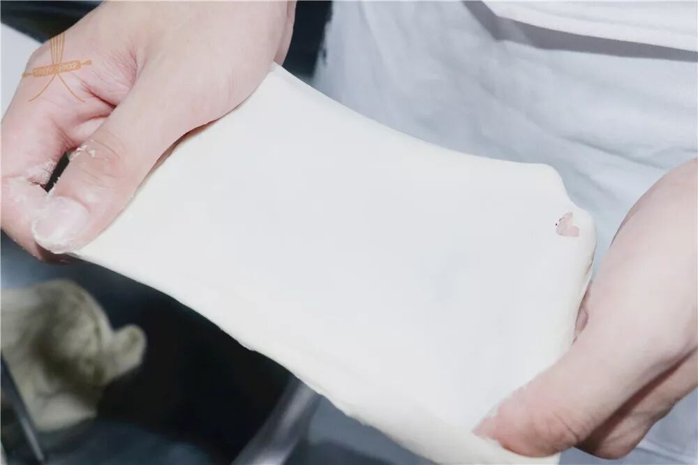 为了保证碱水包特有的嚼劲感,其面团几乎不进行基础发酵,面团出缸后,立刻分割揉圆,能在最大程度上缩减内部的气体膨胀。