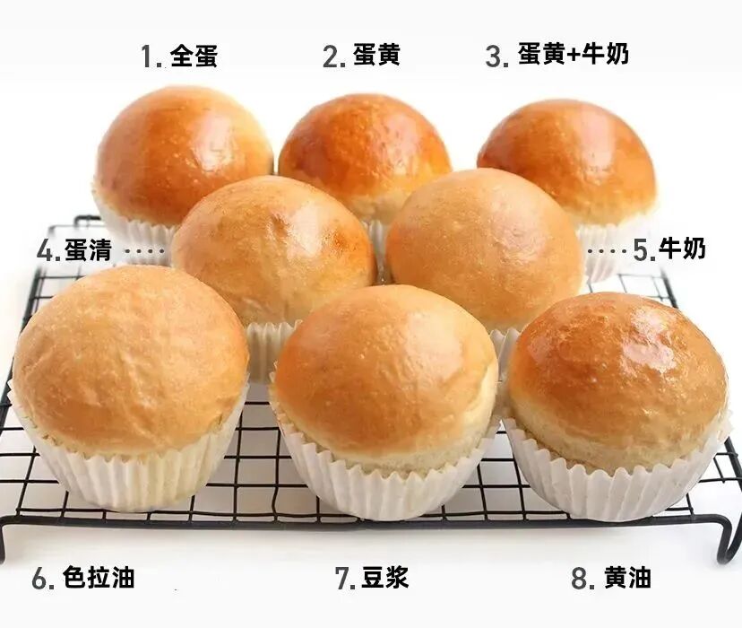 全蛋、蛋黄、蛋清、牛奶等等,用不同的液体刷面,对面包有什么影响呢?他们可以互相替代吗?