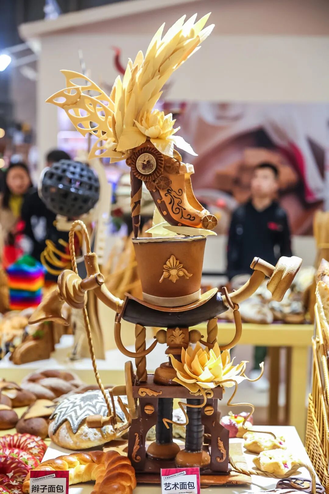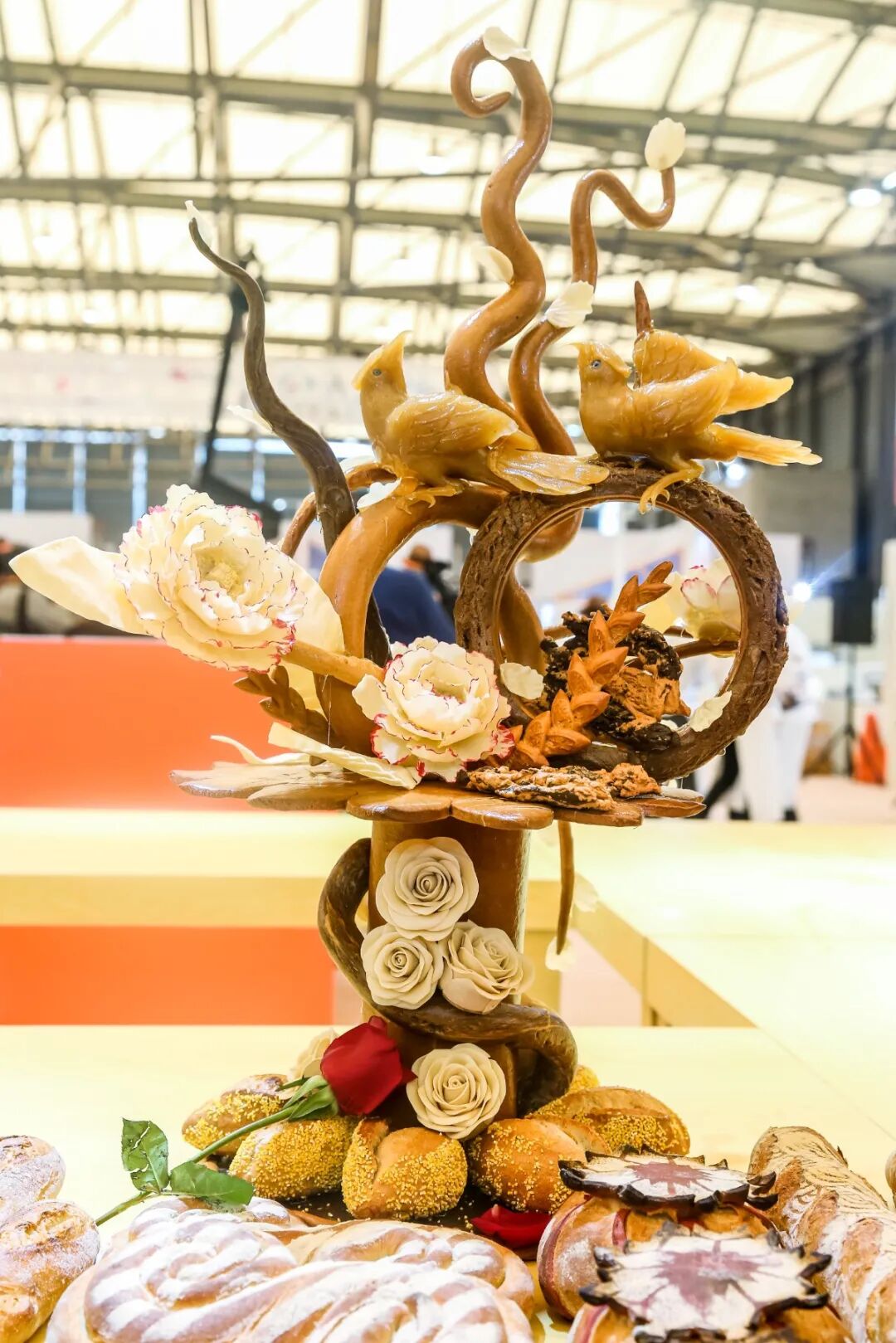 装饰类面包通常会放在面包店的橱窗里做一个天然装饰性的摆件,一来展示这家店面包师傅的技术,二来用来展示这家店的审美能力。同时,装饰类面包在许多面包比赛上必不可少的一个项目,更多的是考验一个面包师傅的审美能力,对于结构造型的设计以及细节的展示。