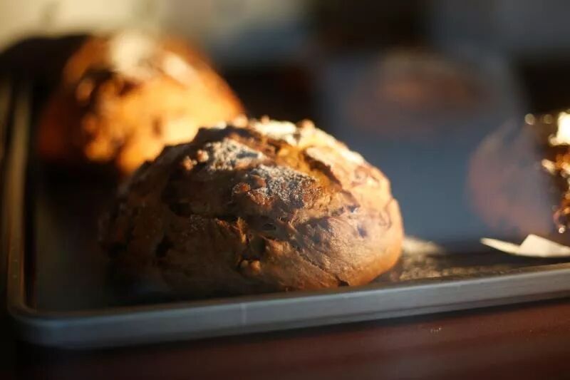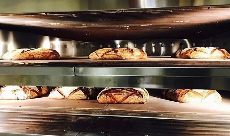 烘烤是制作面包的最后阶段,将醒发好的面团放入烤箱中烘烤,使之形成具有烘焙色泽的外皮部分和白色柔软的内芯部分,从烤箱出炉后,才是真正意义上的面包。