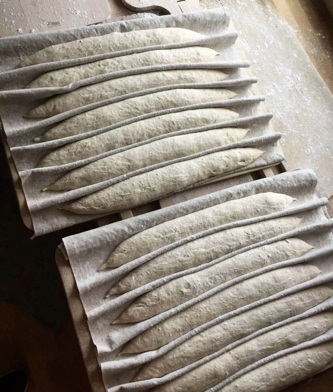 在发酵的过程中,主要是在发酵布上进行二次发酵的阶段,室内湿度和面包面团中的湿度一样很重要,这样的话面团就不会向空气中输送水分,面团表面也就不会干燥,也就是不会结皮。