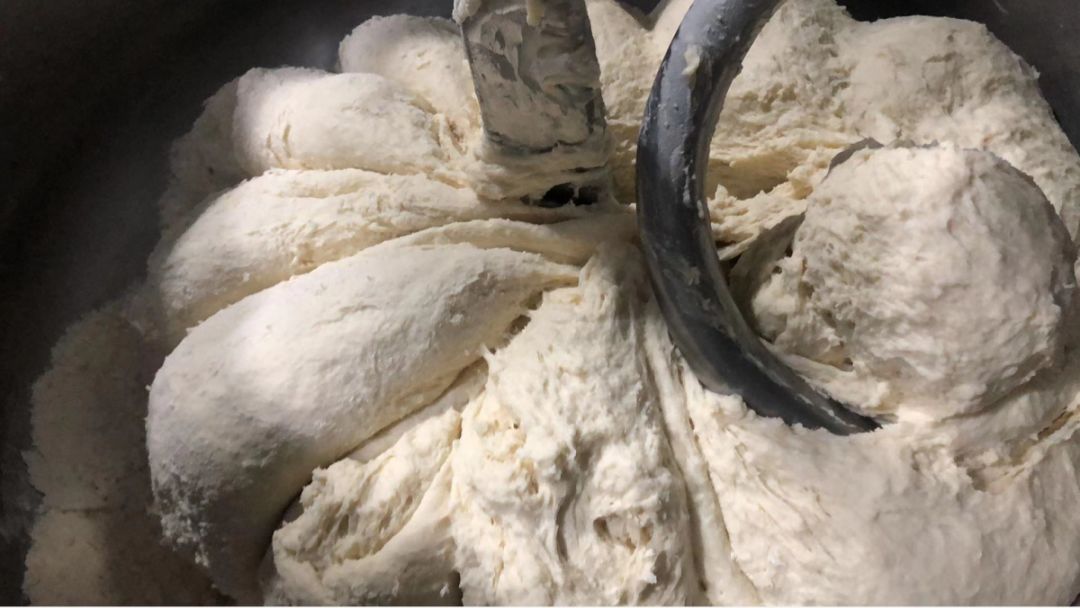 这个阶段要特别注意面团的吸水性,虽然配方一样,不同批次的面粉、原料的更换都会导致吸水率不一样,要适当地增减水量。