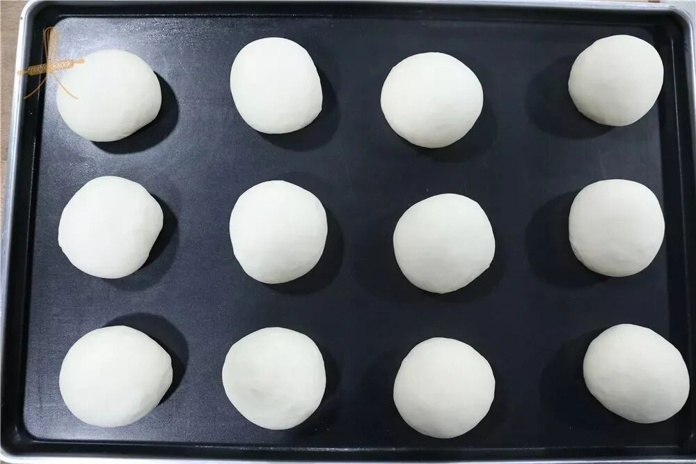 5、排气,分割为150g/个,滚圆,松弛10~15分钟;