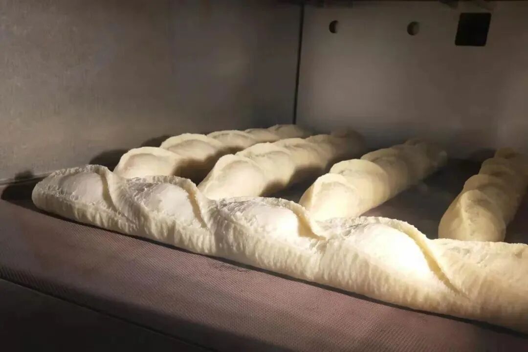 喷入蒸汽的目的就是让面包表皮的脆皮效果更好,让面包更加酥脆,同时也可以增加面包表面的光泽度。