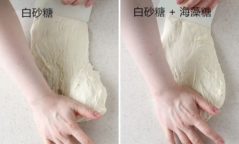 据说如果使用的海藻糖过多,会增加形成面筋的时间。如果面团的糖含量高,用海藻糖代替了全部糖量,可能会造成搅拌所需的时间很长。