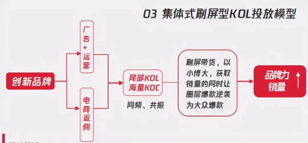 通过电商平台与KOL、KOC同频率带货,借助传销式的营销方式,不断获取销量,量变产生质变,从而转化为大众爆款。