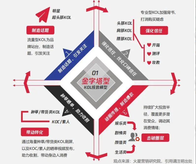 绑定流量KOL,建立合作关系,在每一个品牌大促、新品上新等重要节点,通过KOL的短视频内容来快速扩展知名度,拉动品牌。