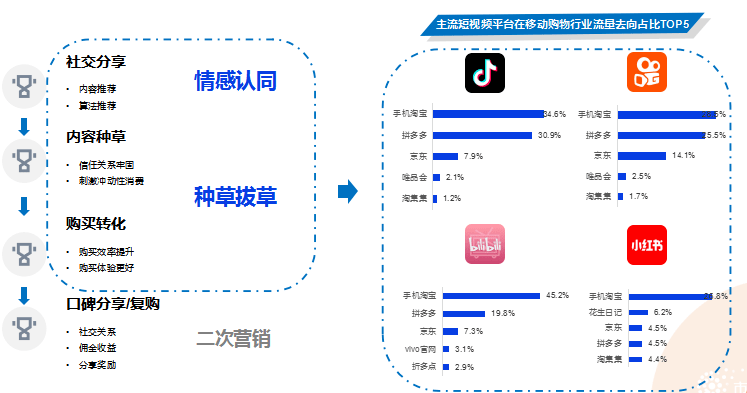 短视频种草可以理解为导购模式,它可以有效激发用户的需求和转化效率,在植入用户心智层面,比直播做的更为透彻。直播流量也能反哺短视频能产生更高的经济效益。