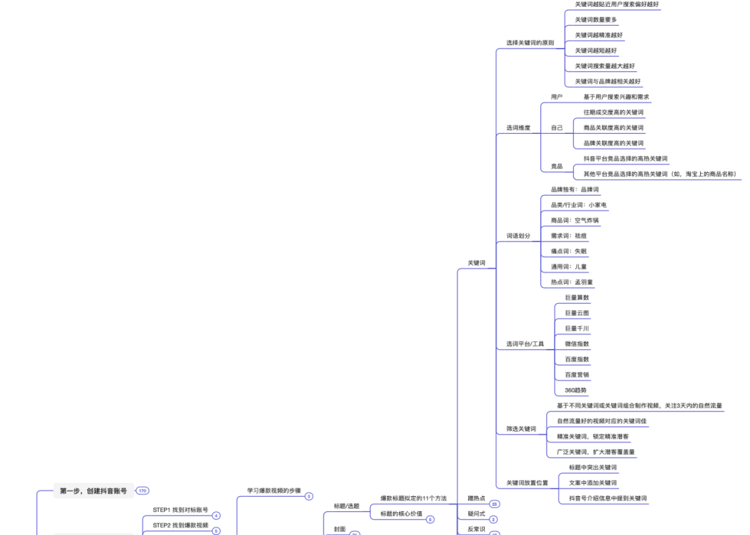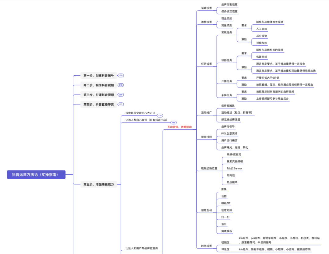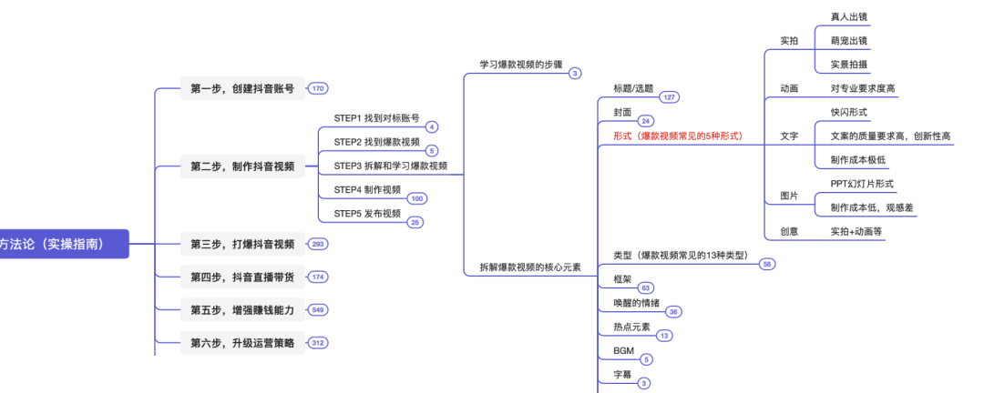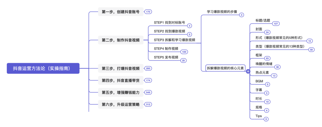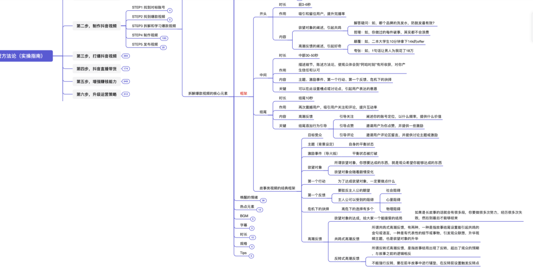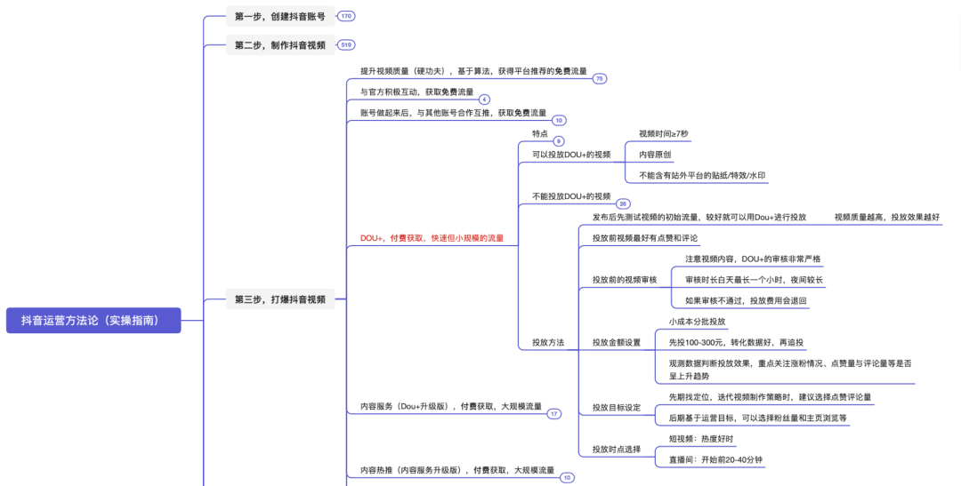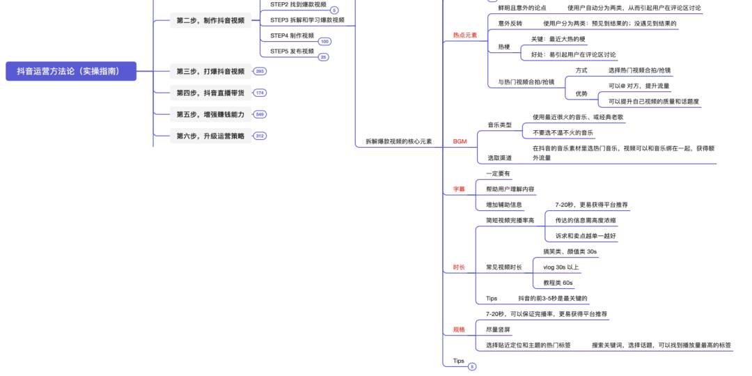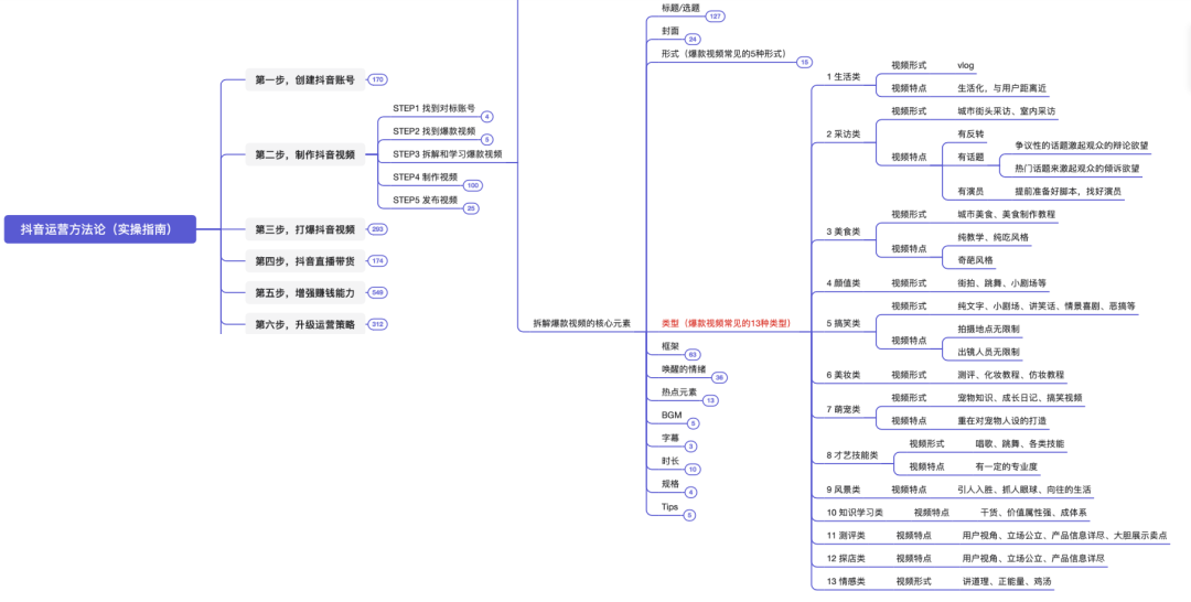 本脑图为,快速打爆抖音的运营技巧。