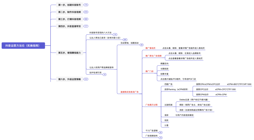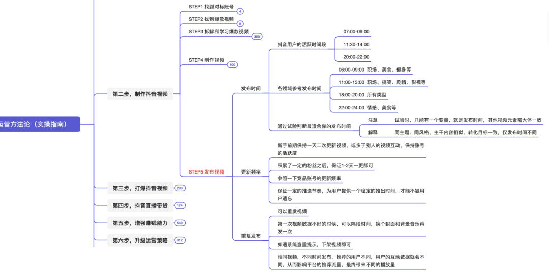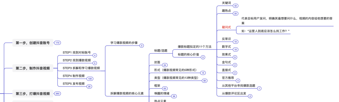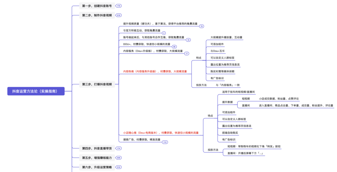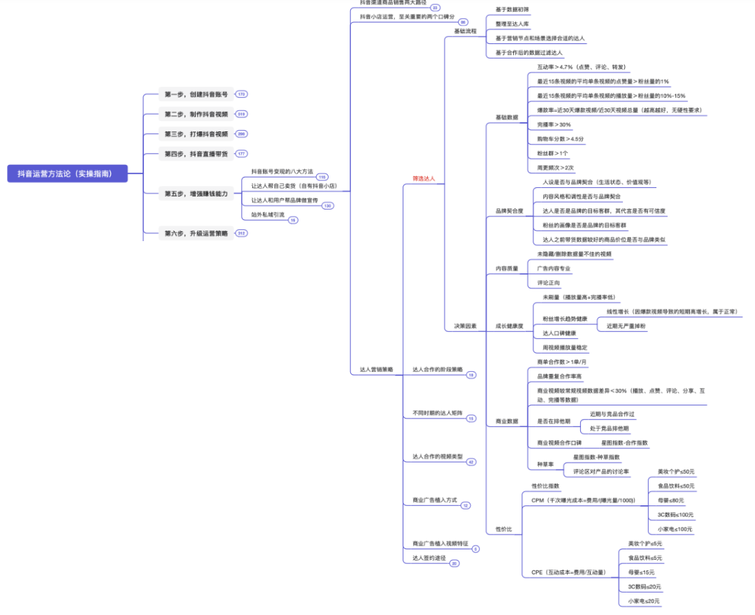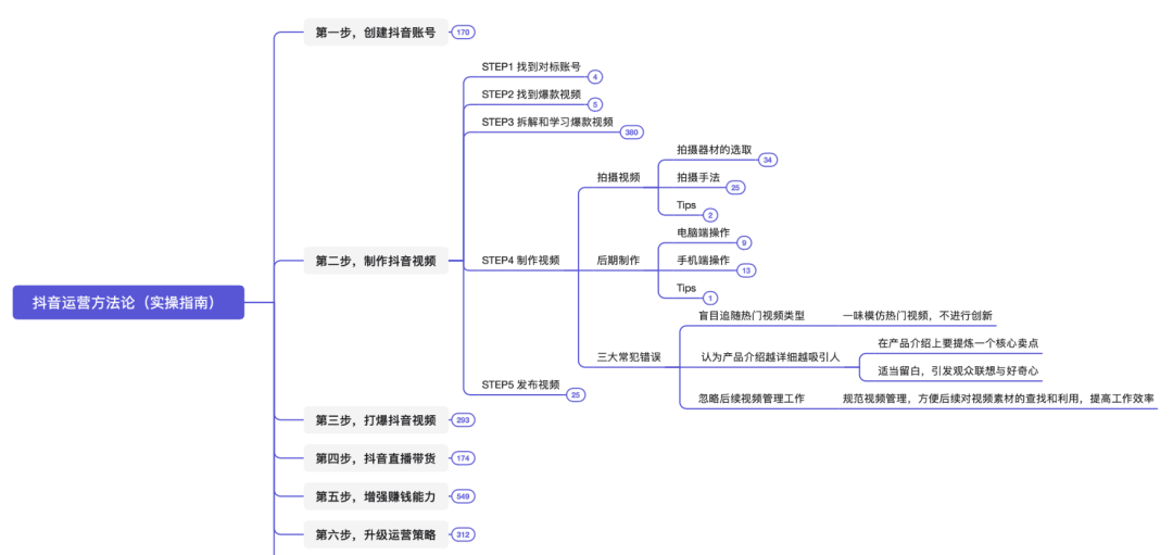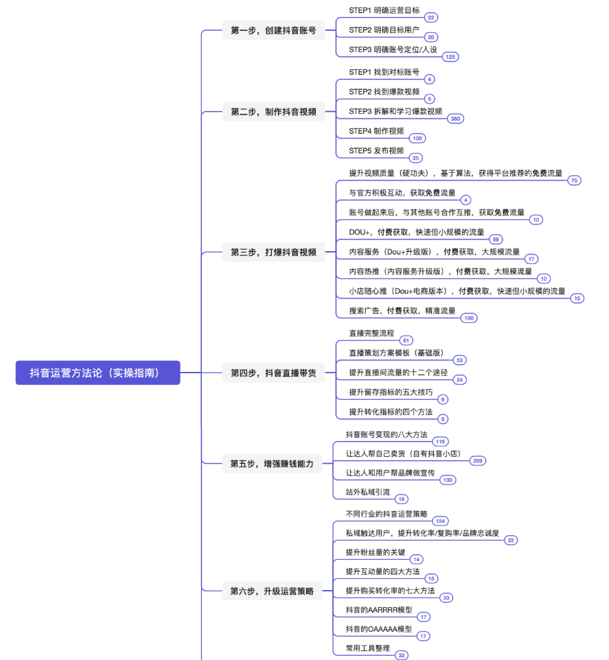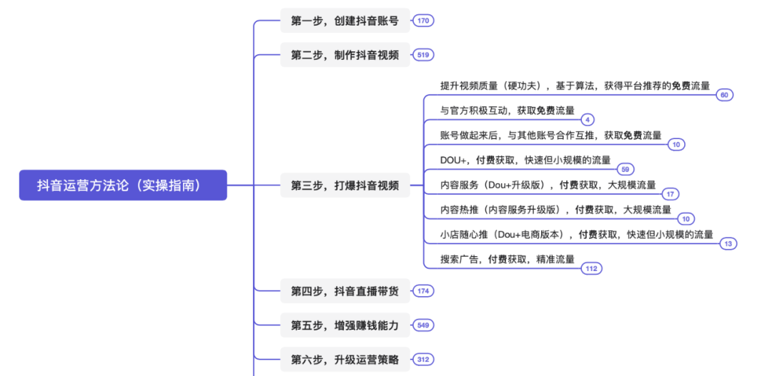 本脑图为,快速打爆抖音的运营技巧。
