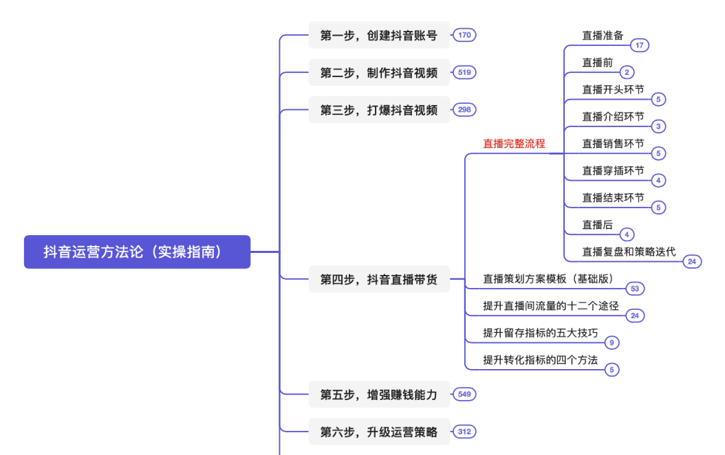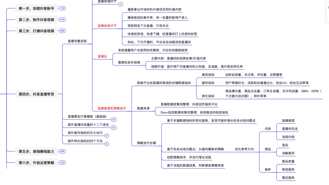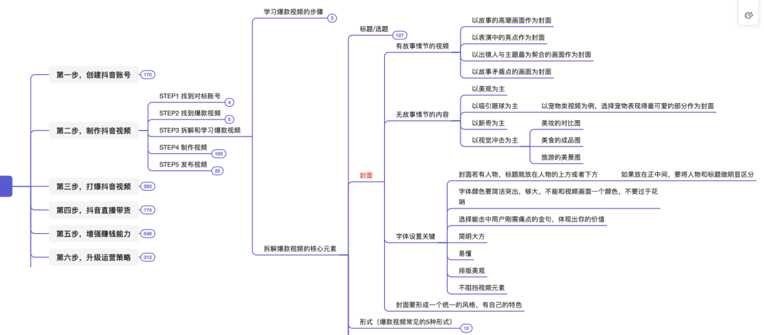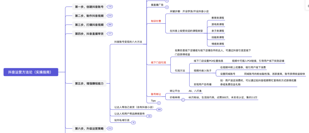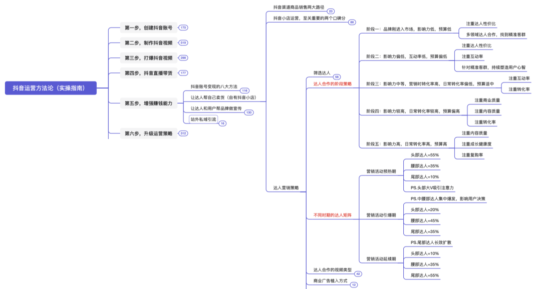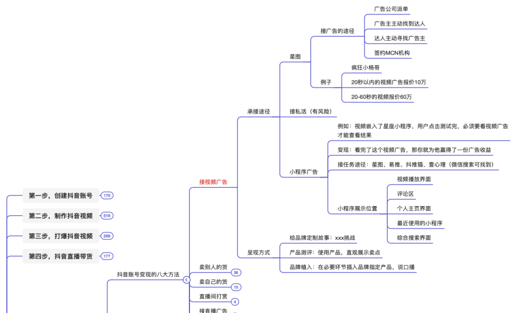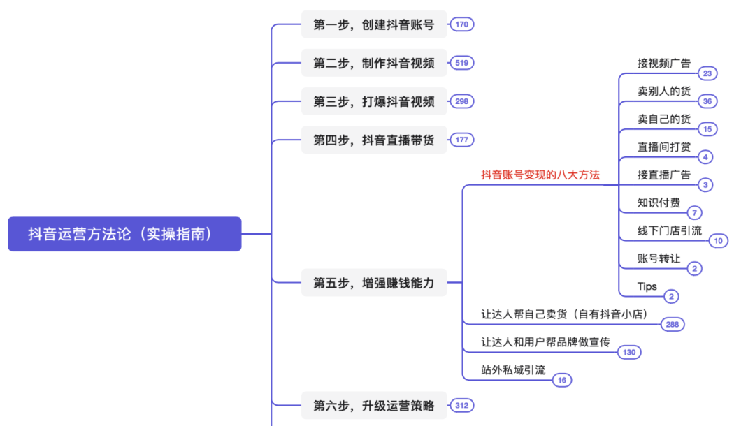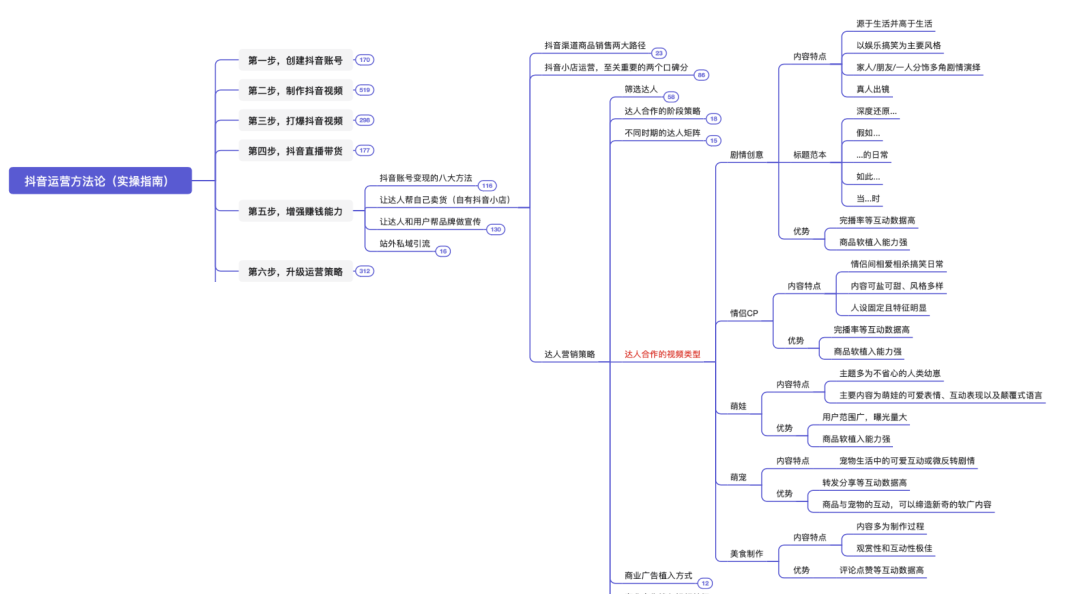 本脑图为,快速打爆抖音的运营技巧。