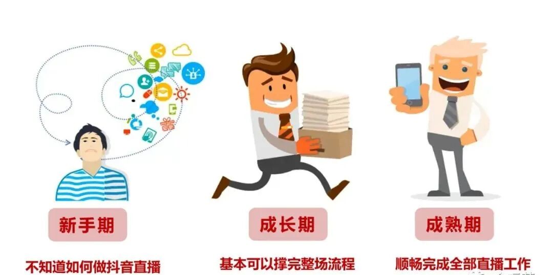 新手期就是不知道如何做抖音直播,成长期直播团队就是基本可以撑完整场直播,成熟期直播团队就是顺畅完成直播全部工作。