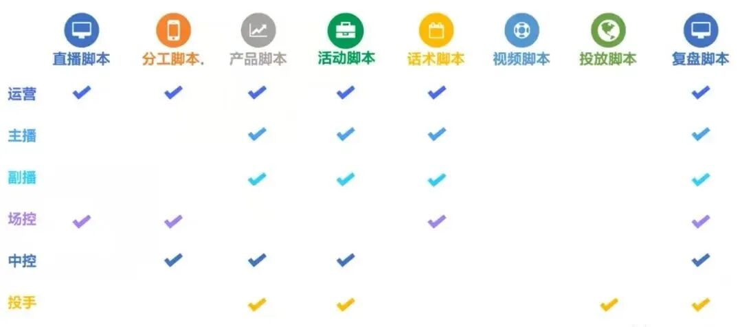 写好脚本之后,我们也要清楚不同的直播团队岗位对应的查看脚本也不尽一样。