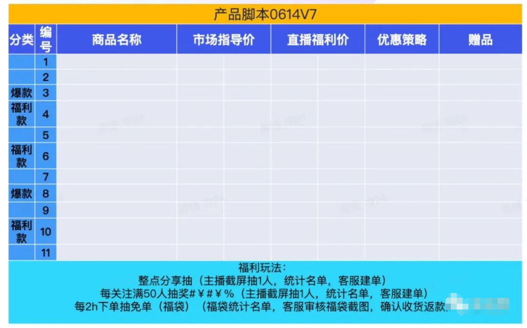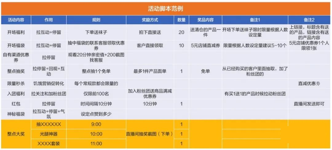 让我们知道在本场直播中做多少场活动,每一个活动的细节,活动的作用,活动的规则,奖励方式,奖励多少数量,具体的活动奖品。