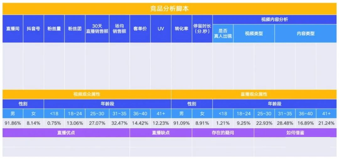 因为是成熟期直播团队,所以脚本先从分析竞品开始,做好竞品分析脚本是更一步的基础。