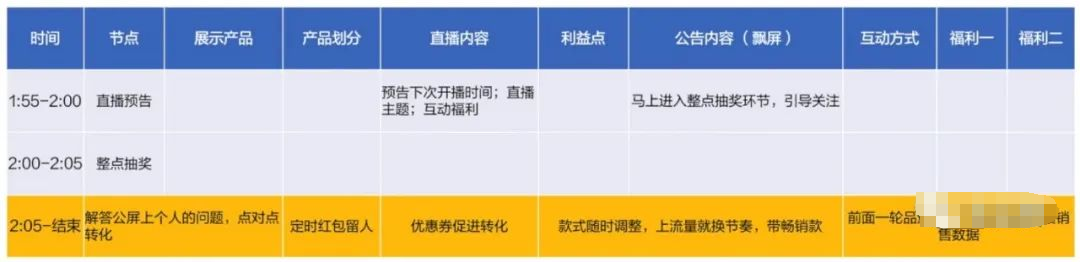 接下来要做的就是时间节点的规划。时间节点规划是分工脚本中最重要的环节,主要是规划直播的每个时间节点需要做的事情和衔接。
