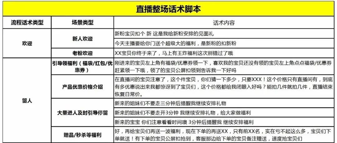 话术脚本是针对一场直播的全部节奏,话术脚本中全部贯穿了产品脚本以及直播节奏。