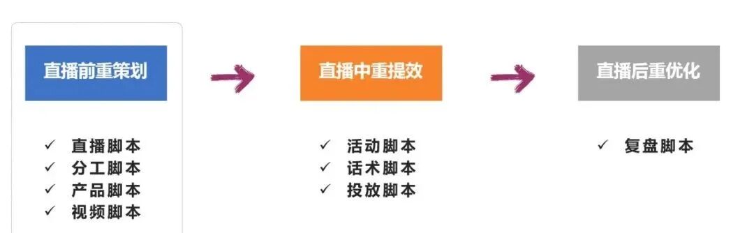 用脚本规划好直播间的每个关键节点:直播前脚本、直播中脚本和直播后复盘脚本。