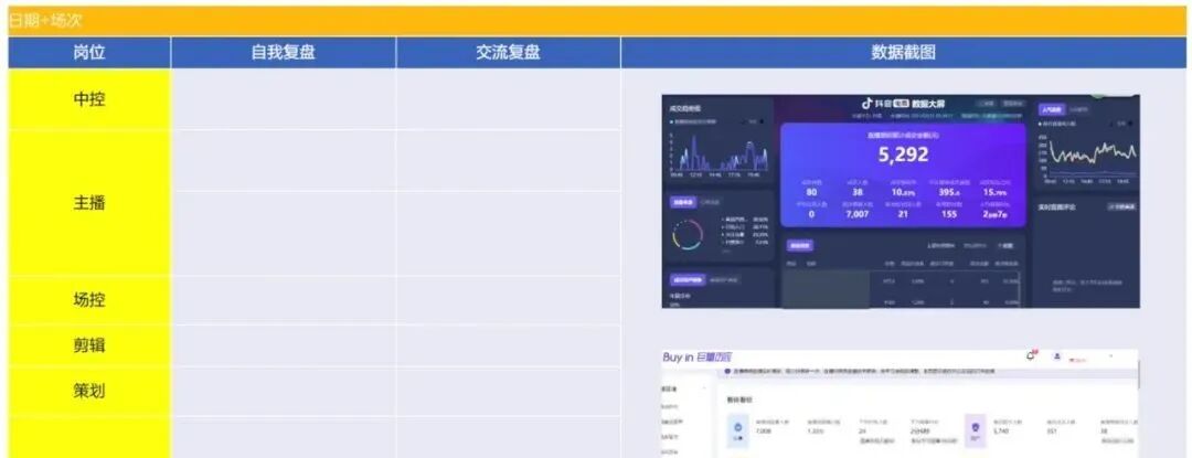 直播结束后,每个岗位都要做一个复盘,这就是复盘脚本。每个岗位都做了什么动作,明确这些动作带来的结果是什么,同时分析岗位是不是存在问题,问题在之后的直播中就可以解决,同时也可以分析每个环节出现的问题以及应对的解决方案。