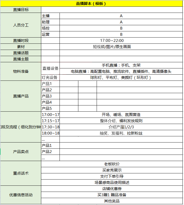 在讲抖音直播脚本文案怎么写之前,先看几个直播脚本模板: