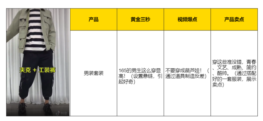 举个例子,比如我们拍产品展示的短视频,就只需要用黄金三秒+拍摄背景+视频爆点+产品卖点