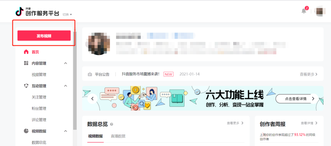 如果你嫌电脑端上传太麻烦,也可以通过手机端上传,但不能直接点击+号选择相册视频上传,这样会对视频有压缩,可以在抖音右上角点击三条杠-创作者服务中心-视频管理-点击上传。