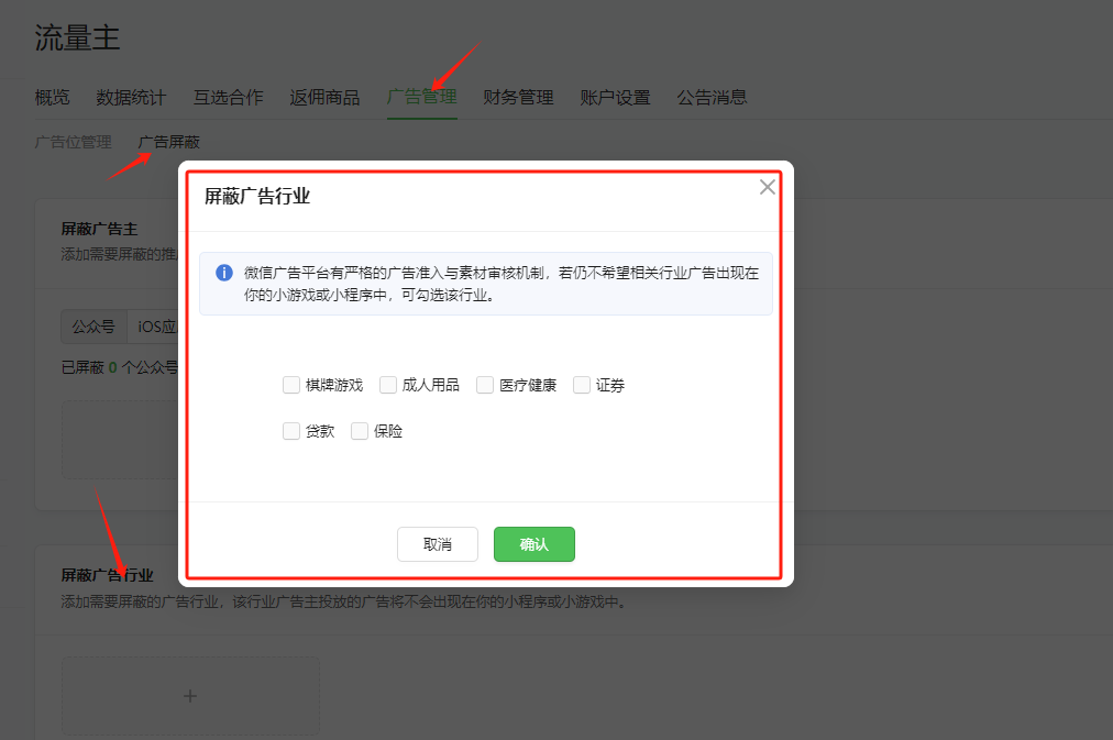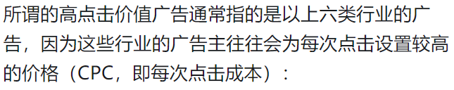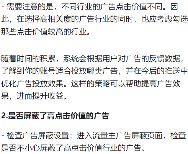 屏蔽页面,检查是否不小心屏蔽了高点击价值行业的广告。