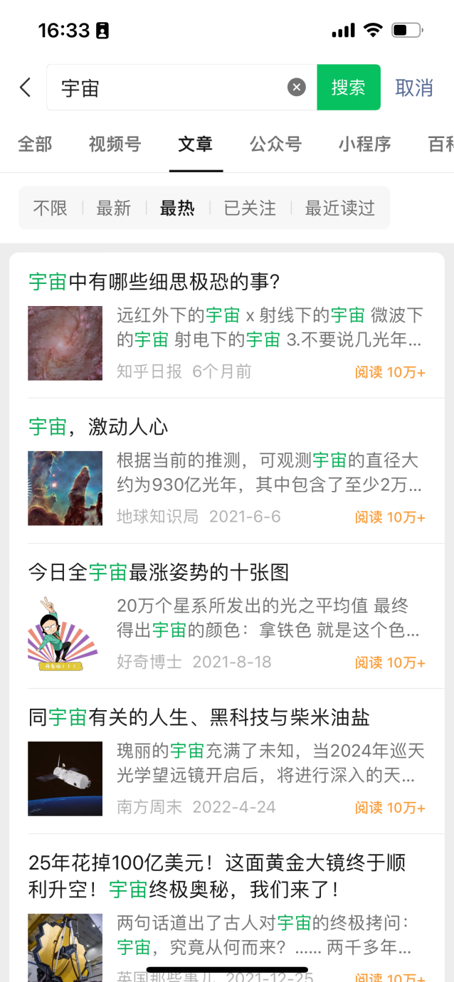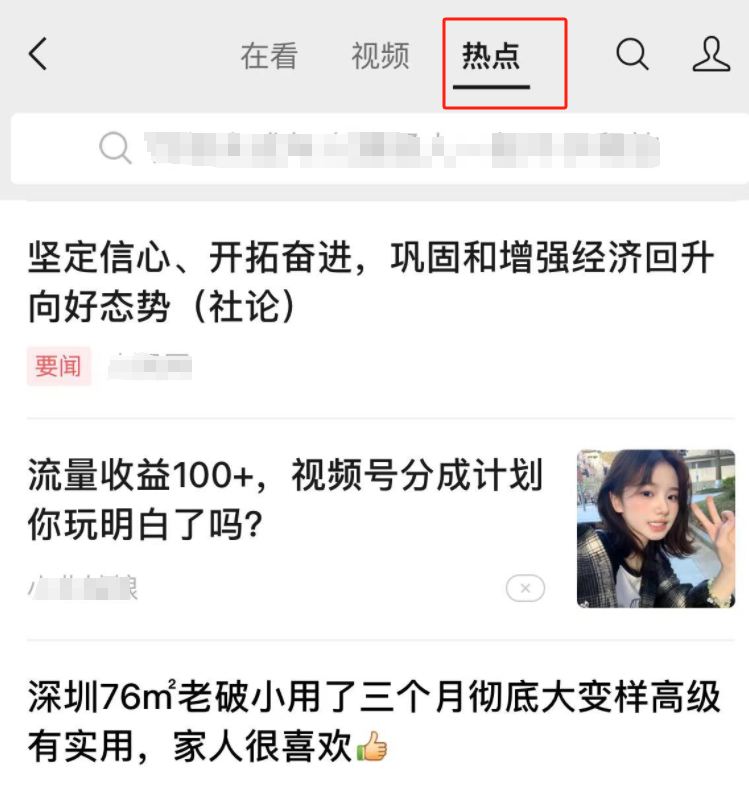 点击微信底部【发现页】-【看一看】-【在看】、【热点】