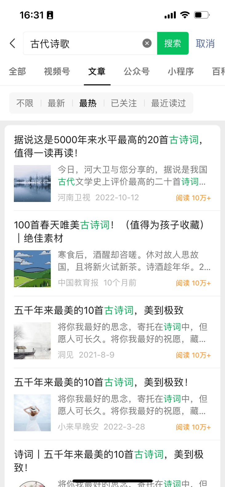 2.订阅号消息内容推荐