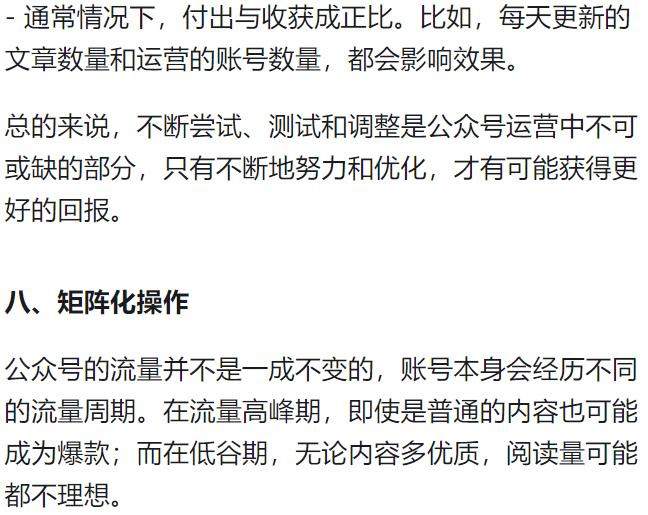 矩阵多账号操作,每个号坚持在一个领域内持续创作,直到把该类型的内容吃透,不断迭代优化内容生产效率和爆文固定框架,一定能拿到好的结果。
